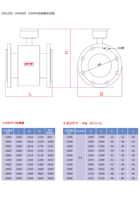 *DN700~DN3000,特殊訂貨精確度可達示值的±0.3% (流速≥1m/s)或±3mm (流速<1m/s)。
